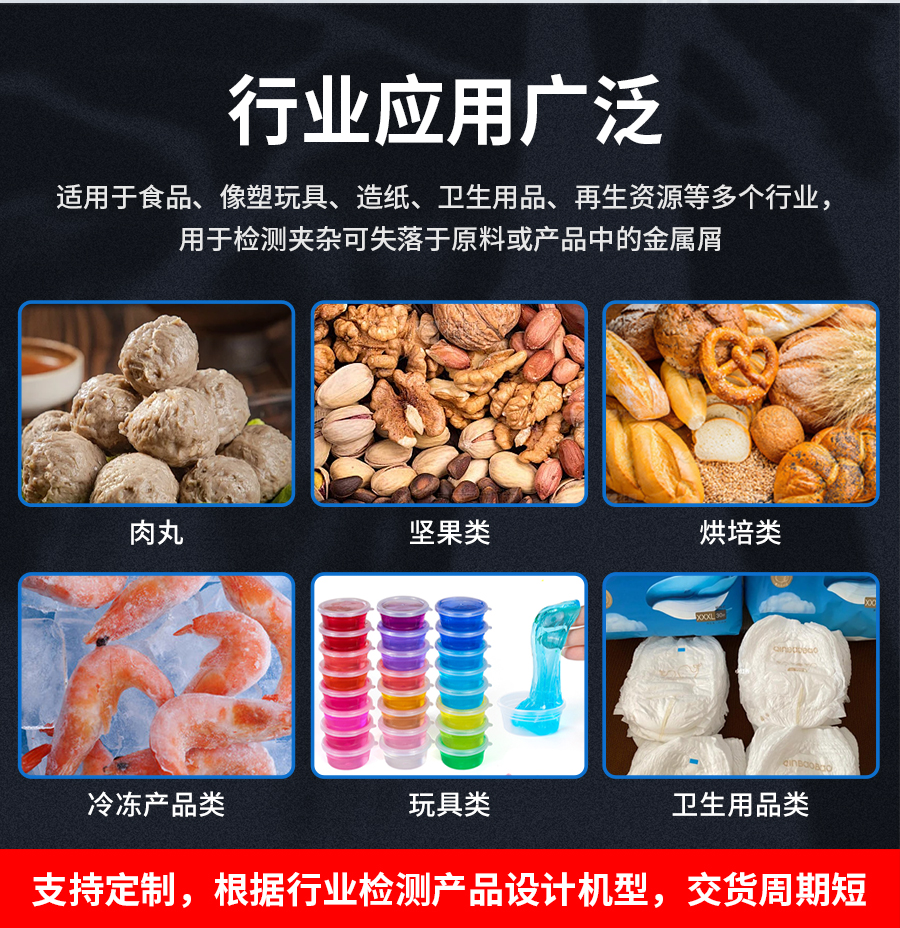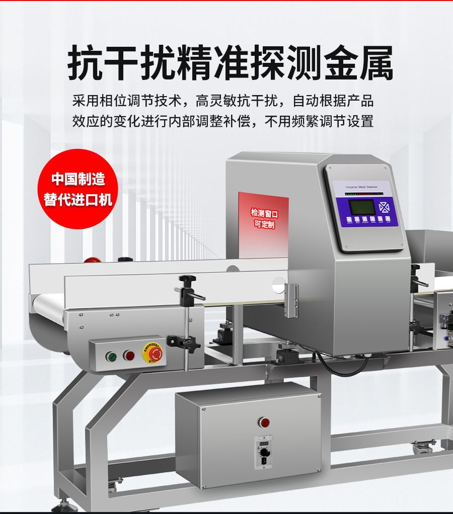 進口高精度金屬檢測機,采用德國技術,檢測精度高,可檢測到直徑0.5mm鐵球,性能卓越。適用于食品,醫藥, 化工等行業中對產品進行金屬雜質檢測,檢測散料及包裝后的產品。