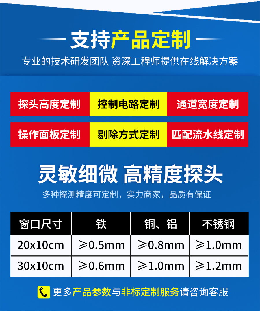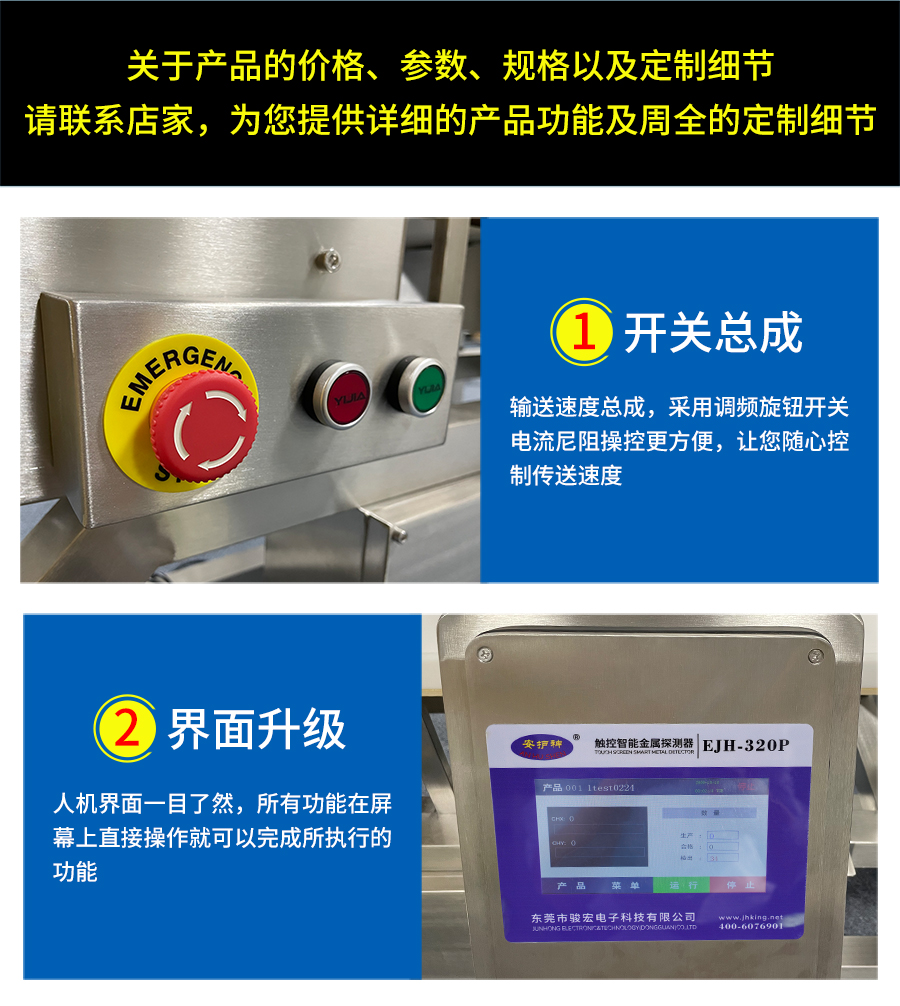 EJH-320P智能全金屬檢測儀精準高效,采用先進的數字信號處理技術和智能化算法,精準識別各類金屬雜質,可檢測鐵、不銹鋼、銅、鋁等所有金屬,靈敏度高達0.3mm,即使是細微的金屬顆粒也能輕松識別,采用優質元器件和精密制造工藝,確保設備長時間穩定運行,降低維護成本,先進的數字信號處理技術,有效抑制產品效應和環境干擾,確保檢測結果的準確性。 廣泛應用在工業生產、食品加工、紡織制造等領域,可根據不同行業、不同產品需求,提供通道式、落體式、管道式等多種型號,為企業解決有效檢測并剔除金屬異物的難題。
