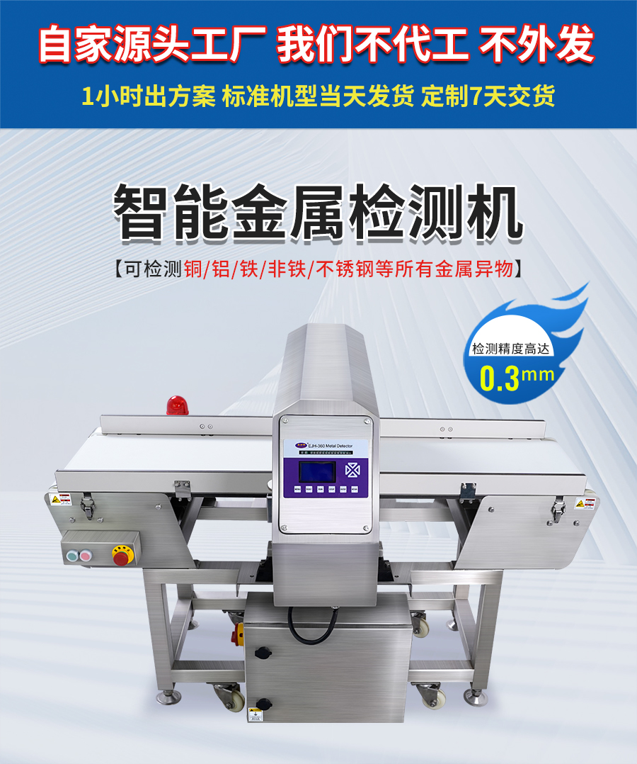 進口高精度金屬檢測機,采用德國技術,檢測精度高,可檢測到直徑0.3mm鐵球,性能卓越。適用于食品,醫藥, 化工等行業中對產品進行金屬雜質檢測,檢測散料及包裝后的產品。