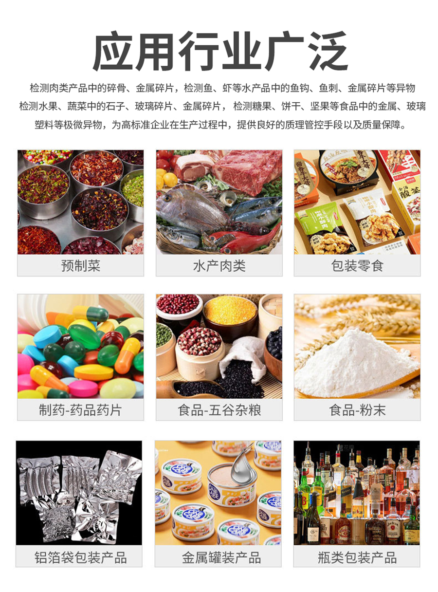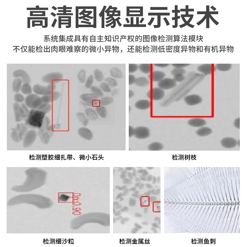 食品X光異物檢測機,檢測碎骨、金屬碎片、魚刺、魚鉤、貝殼碎片、檢測石子、玻璃、塑料、金屬等異物,高效自動檢測,降低人工成本,高精度、高速度,適用于肉類/水產/零食