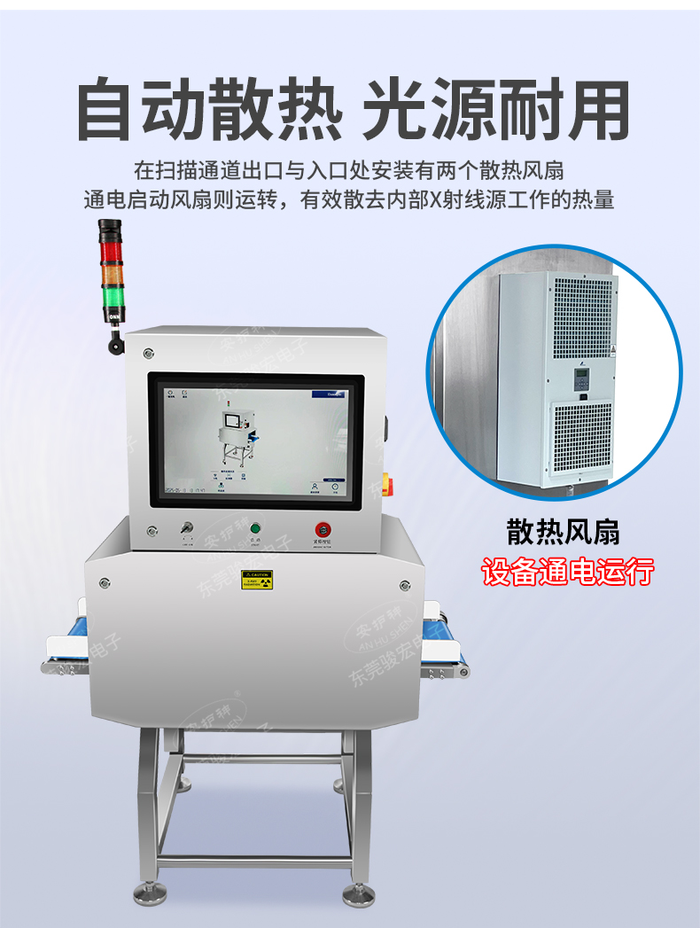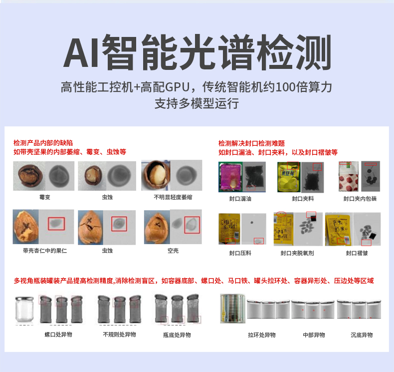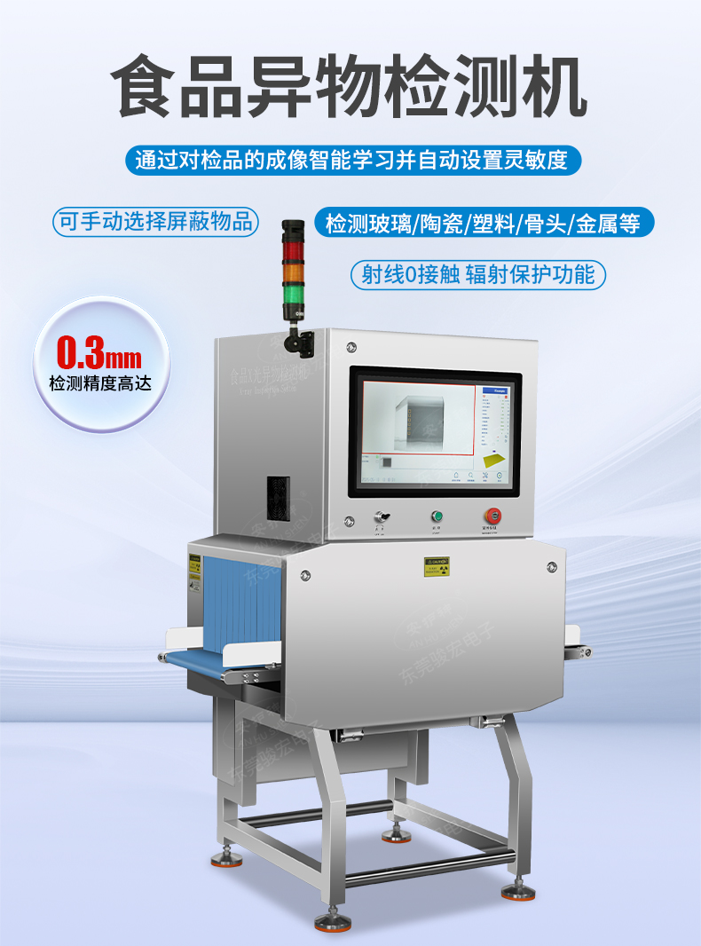 食品異物X光機檢出金屬(鐵、不銹鋼、鋁絲)、非金屬(玻璃、陶瓷、骨頭、硬塑料),尤其解決金檢機無法識別的薄鋁箔異物難題,復雜包裝穿透檢測,適用罐裝/真空/鋁箔包裝,雙射線技術精準識別醬料瓶內玻璃渣、罐頭魚刺、巧克力中的陶瓷碎片。 2025新型X光異物檢測機,食品X光機廠家直供,雙視角0.3mm精度,替代金檢機,鋁箔包裝穿透,支持定制,當天出方案 。